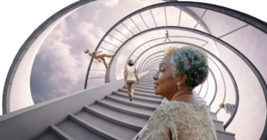 This is a new way to look at the aging process, which has often been visualized as an arc starting at birth and moving upward into middle age and then moving down from there. This visual suggests that everything will decline with age and that the best years are in the past. Brooks talks about aging being shown as a spiral, not an arc, with our wisdom growing and changing as we age. While some parts of our abilities will diminish, others will flourish.