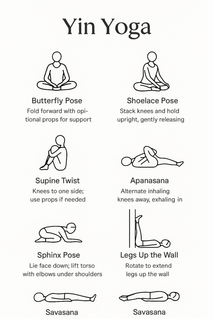 This session is designed to release tension in your hips, spine, and shoulders while nourishing joints and connective tissue. Through simple, floor-based poses like Butterfly, Shoelace, Supine Twist, Sphinx, and Legs Up the Wall, you’ll learn how to relax deeply and restore balance—without pushing or straining. The long holds and use of props (pillows, bolsters, or blankets you already have at home) make it accessible for every body, no matter your level of flexibility.